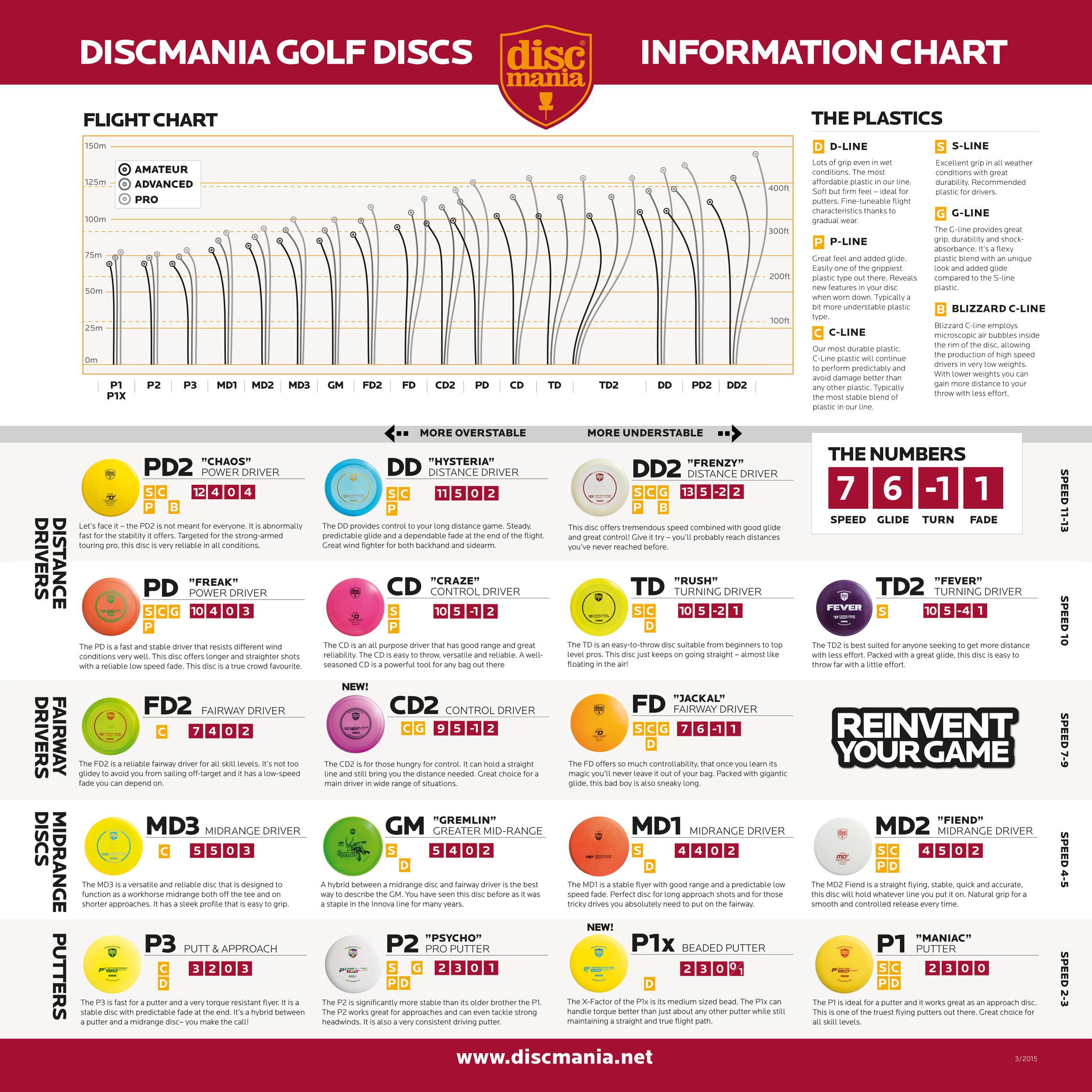 Check out the resource from our friends at Discmania to learn more about how the different numbers, different plastics and different shapes all impact the trajectory of a disc.